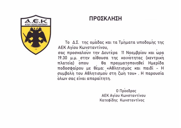 Αρχική Τοπικές Κατηγορίες Ημερίδα ποδοσφαίρου διοργανώνει η ΑΕΚ Αγίου Κωνσταντίνου Τοπικές Κατηγορίες Ημερίδα ποδοσφαίρου διοργανώνει η ΑΕΚ Αγίου Κωνσταντίνου Από giannis - 4 Νοεμβρίου 2024 FacebookTwitterPinterestWhatsApp ΠΑΡΟΜΟΙΑ ΑΡΘΡΑΠΕΡΙΣΣΟΤΕΡΑ ΑΠΟ ΤΟΝ ΔΗΜΙΟΥΡΓΟ “Ο Ανδραίμων” : Αποτελέσματα Τρίτης (22/4) Ο Ατρόμητος Αντιρρίου αποφασίζει για τη στήριξη στις επικείμενες εκλογές της ΕΠΣ Αιτ/νίας Απόλλων Θέρμου: Η άνοδος των “δικών μας” παιδιών! Ροή ειδήσεων Live Streaming: Στουτγκάρδη – Φράιμπουργκ 23 Απριλίου 2026 Η Δάφνη Μεγάλης Χώρας στηρίζει τη “Νέα Εποχή” και τον Παναγιώτη... 23 Απριλίου 2026 Ο Τσιμεντερίδης στο Κηφισιά-Παναιτωλικός 23 Απριλίου 2026 Σύμβουλος του Τραμπ προτείνει αντικατάσταση του Ιράν με την Ιταλία στο... 23 Απριλίου 2026 Το Αγρίνιο στο επίκεντρο του τελικού κυπέλλου Super League K19 23 Απριλίου 2026