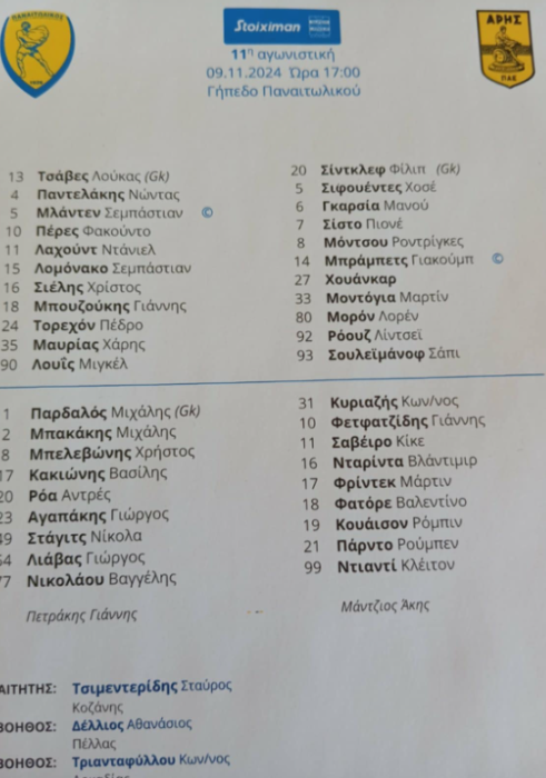 Τσάβες, Μαυρίας, Τορεχόν, Σιέλης, Παντελάκης, Μλάντεν, Πέρες, Λούις, Μπουζούκης, Λομόνακο, Λαχούντ
