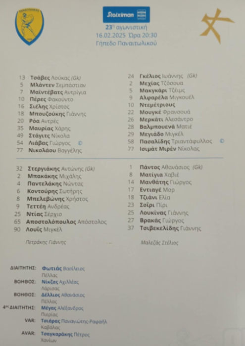 Αρχική Παναιτωλικός Παναιτωλικός-Athens Kallithea : Οι συνθέσεις των δυο ομάδων (16/2) Παναιτωλικός Παναιτωλικός-Athens Kallithea : Οι συνθέσεις των δυο ομάδων (16/2) Από giannis - 16 Φεβρουαρίου 2025 FacebookXPinterestWhatsApp Δείτε τους ποδοσφαιριστές που επέλεξε ο Γιάννης Πετράκης για την εντός έδρας αναμέτρηση με την Athens Kallithea. Ώρα έναρξης στις 20.30 ΠΑΡΟΜΟΙΑ ΑΡΘΡΑΠΕΡΙΣΣΟΤΕΡΑ ΑΠΟ ΤΟΝ ΔΗΜΙΟΥΡΓΟ Σμυρλής: «Στόχος μας η σταθερότητα και η πρώτη θέση στα play-out» Παναιτωλικός: Πολύτιμος βαθμός στη Νεάπολη, άντεξε και πήρε το 0-0 με την Κηφισιά Αναστασίου: «Σημαντικό ότι κρατήσαμε το μηδέν, κοιτάμε το επόμενο Σάββατο» Ροή ειδήσεων Αμφίλοχος : «Η σεζόν έκλεισε, η προσπάθεια συνεχίζεται» 27 Απριλίου 2026 Πάει Μαδρίτη ο Μπραντ 27 Απριλίου 2026 Σ.Π.Π.Ν. Αιτ/νίας: «Θερμά συγχαρητήρια στις ομάδες και τους προπονητές 27 Απριλίου 2026 Ριμπάκινα: «Δεν εμπιστεύομαι το line-calling» 27 Απριλίου 2026 Ο ΑΟ Ελαιοφύτου στηρίζει τον Παναγιώτη Στεργίου και τον συνδυασμό «Νέα... 27 Απριλίου 2026