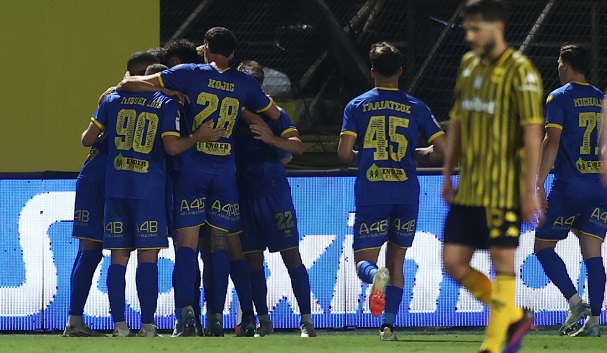 Κι όμως οι φιλοξενούμενοι… πάγωσαν το «Κλεάνθης Βικελίδης» μετά την εξαιρετική κάθετη πάσα του Σιέλη στο 65 προς τον Αγκίρε, ο οποίος πέρασε και τον Μάικιτς, πλάσαρε και έκανε το 0-1!