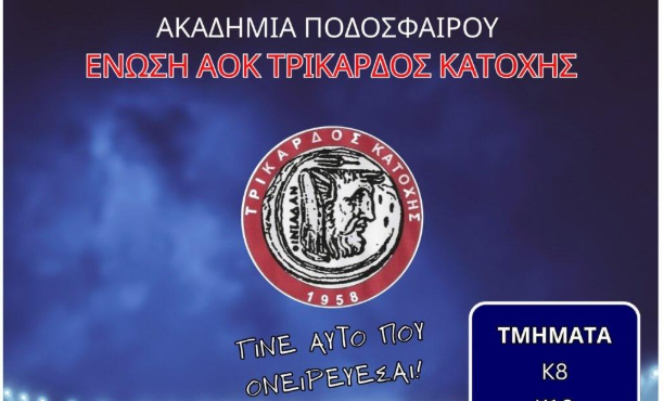 Οι εγγραφές των παιδιών στην Ακαδημία ποδοσφαίρου Ένωση Αοκ Τρίκαρδος Κατοχής ξεκινούν σήμερα Δευτέρα 1 Σεπτεμβρίου.