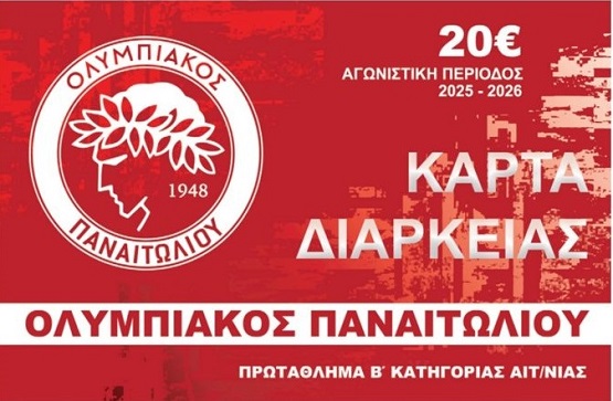 Ο Ολυμπιακός Γ.Σ. Παναϊτωλίου ανακοινώνει την κυκλοφορία των καρτών διαρκείας για την αγωνιστική περίοδο 2025–2026.
