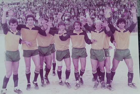 Μετά το τέλος του αγώνα, οι ποδοσφαιριστές του Παναιτωλικού διακρίνονται στην φωτογραφία να πανηγυρίζουν τον πολύτιμο βαθμό της ισοπαλίας. Είναι μια εικόνα αυθεντικής χαράς και ομαδικότητας, από μια εποχή που το ποδόσφαιρο παιζόταν με πάθος, ψυχή και αγάπη για τη φανέλα.