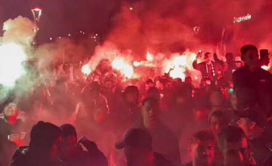 Οι φίλοι της Καλαμάτας αποθέωσαν παίκτες, τεχνικό επιτελείο και διοίκηση, δημιουργώντας μια εκρηκτική ατμόσφαιρα. Καπνογόνα φώτισαν τον ουρανό και η νύχτα έγινε μέρα, με συνθήματα, τραγούδια και ασταμάτητους πανηγυρισμούς να δίνουν τον τόνο σε μια βραδιά που θα μείνει αξέχαστη στην ιστορία της ομάδας και της πόλης.