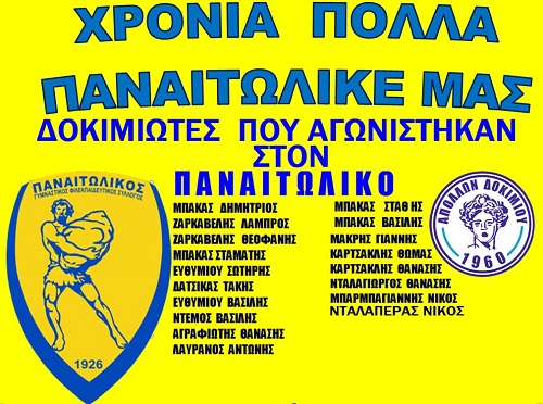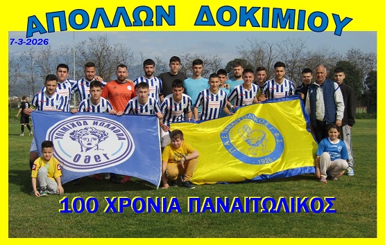 Ο Απόλλων Δοκιμίου, στον χθεσινό αγώνα πρωταθλήματος με αντίπαλο τον Αστέρα Αγρινίου, θέλησε να τιμήσει τη συμπλήρωση 100 χρόνων από την ίδρυση του Παναιτωλικού, αλλά και όλους τους Δοκιμιώτες ποδοσφαιριστές που φόρεσαν τη φανέλα της ομάδας και τίμησαν τα χρώματά της.