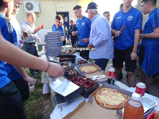 Στήθηκε ένα όμορφο τραπέζι με σουβλάκια, λουκάνικα, πίτσες, κρασί, μπύρες και καλή διάθεση για όλους: ποδοσφαιριστές, διαιτητές, διοικήσεις των δύο ομάδων, αλλά και φίλους του ερασιτεχνικού ποδοσφαίρου που βρέθηκαν στο γήπεδο για να ζήσουν αυτή την ξεχωριστή στιγμή.